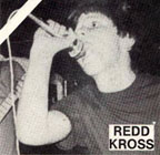 | Taken by Al Kowalewski of Flipside magazine, the cover photo captures a very young Steve McDonald singing "Standing In Front Of Poseur". Most probably from one of their very first gigs upstairs at the Hong Kong Low restaurant in L.A.'s Chinatown in late 1979. It could have been the same evening that David Bowie visited the punk hang-out, sitting for a long time unmolested at a back table until Craig Lee (The Bags) began hounding him for an autograph and words of wisdom. Afterwards, Posh Boy caught one of the group members in the act of spray painting their "Red Cross" logo in the parking lot. Posh Boy never subscribed to that approach to obtaining name recognition. | |